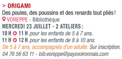 Pour vous inscrire contactez la médiathèque de VOIRON au 04 76 67 93 13